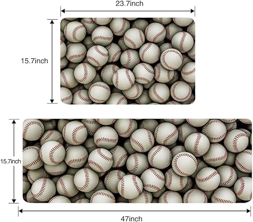 Anti Fatigue Seamless Baseball 2 Piece Non Slip Waterproof Rugs and Mats 15.7 Inch x 23.7 Inch+ 15.7 Inch x 47 Inch