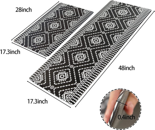Anti Fatigue Set Black Boho Cushioned Non Slip Kitchen Mats PVC Waterproof Kitchen Runner Rug 17"X48"+17"X28"