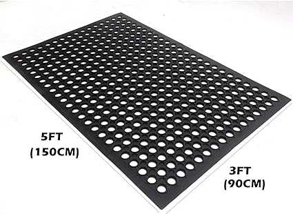 Anti Fatigue Rubber Floor Mat 3FT x 5FT Outdoor Rubber Drainage Mat with Non-Slip Backing Commercial Kitchen Floor Mat Rubber Mat for Restaurant Kitchen Bar Garden Wet Area (Black)