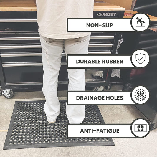 Anti Fatigue Rubber Floor, Restaurant Kitchen Drainage, Durable Non-Slip Bar, Utility Indoor Outdoor Wet Area Mat - 24" x 36"
