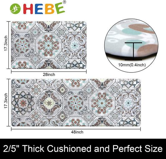 Anti Fatigue Set of 2 Non Skid Waterproof Cushioned Kitchen Floor, Vintage Comfort Standing Desk Office Mat