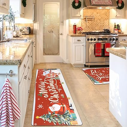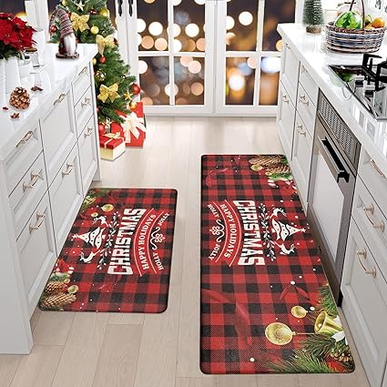 Anti Fatigue Non-Slip Christmas Memory Foam Thick Cushioned Waterproof Wipeable Kitchen Mat Set of 2, 17"×28" and 17"×47"