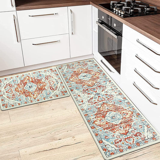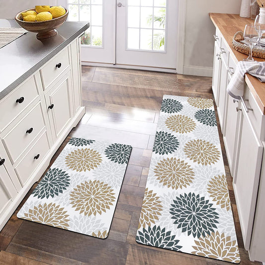 Anti Fatigue Set of 2 Waterproof Non Slip Farmhouse Cushioned Kitchen Mats Set