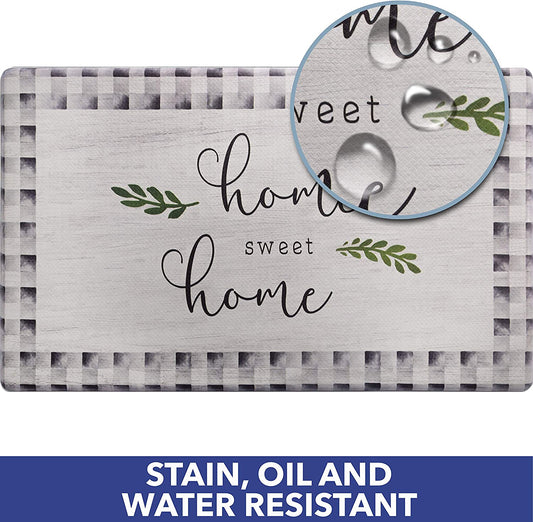 Cozy Living Anti Fatigue, Home Sweet Home Themed Cushioned, Non Slip, Easy Wipe Clean, 1/2 Inch Thick , Kitchen Runner Rug Mat - 18" x 30", Grey