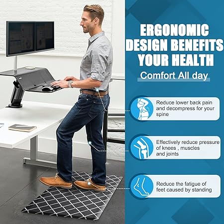 Non-Skid Cushioned, Anti Fatigue 1/2Inch Thick, Ergonomic Comfort Foam Standing Mat, 17"x29"+17"x59",Black