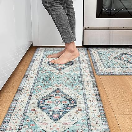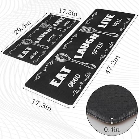 Non-Slip Backing Kitchen Mat Set of 2 Washable Kitchen Rug Sets with Runner for Home Kitchen 17"x47.2"+17"x30"