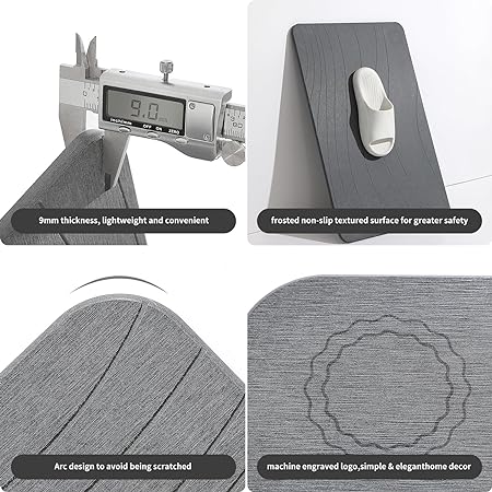 Non-Slip Diatomaceous Earth Bath Mat Stone, Easy to Clean (23.6"x15.3",- Dark Gray)