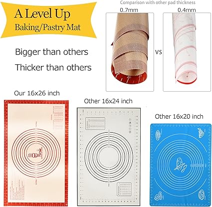 Non-slip Silicone Pastry Mat Extra Large with Measurements 16''By 26'' for Silicone Baking Mat, Counter Mat, Dough Rolling Mat,Oven Liner,Fondant/Pie Crust Mat
