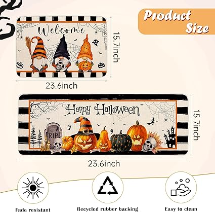 Non-Slip Gnome Doormat for Outdoor Indoor Kitchen Decor, Halloween Decorative Kitchen Mats Set of 2,