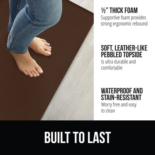 2 Piece Anti Fatigue Cushioned Kitchen Floor Mat Set - 17x24 and 17x48, Brown