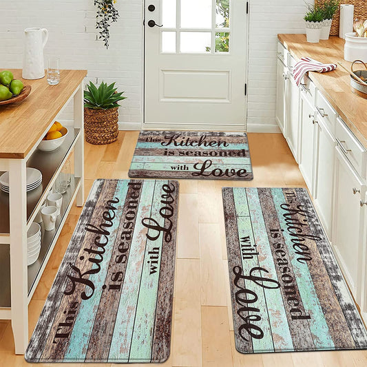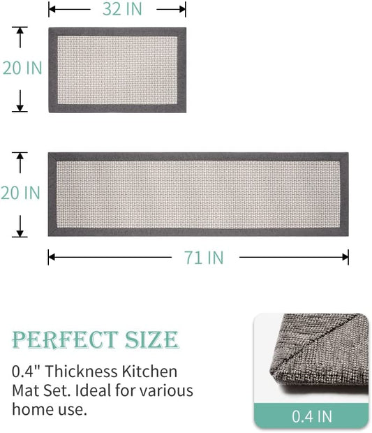 2 Piece Anti Fatigue Farmhouse Kitchen Mat Set - 17'' x 47'' + 17'' x 30''