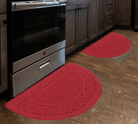 2 Piece 18”X30”, Non Skid Washable Half Circle Kitchen Mats, - Red-2