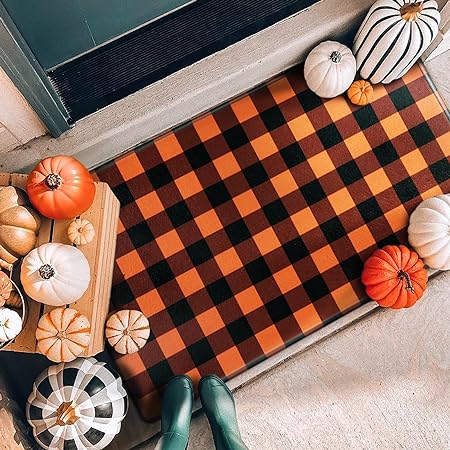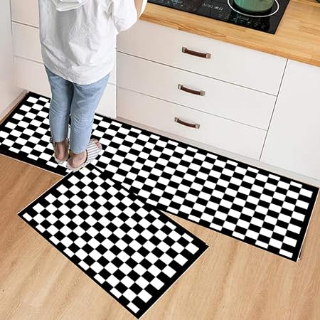 2 PCS Non Slip Halloween Decor Checkered Kitchen Floor Mats, 17x30 and 17x47 Inch