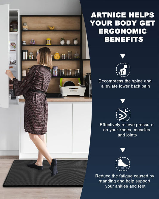 2 Piece Anti Fatigue Cushioned Kitchen Floor Mat Set, Supportive Padded Memory Foam Rugs