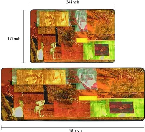 2 Piece 17"X48" 17"X24" Very Abstract Image on Glass in Verso Non-Slip Soft Kitchen Mat