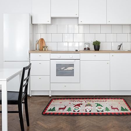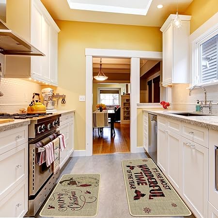 2 PCS Winter Low-Profile Christmas Kitchen Rugs and Mats - Approximately16x24 and 16x43Inch