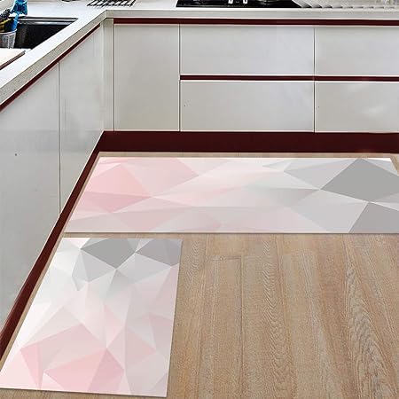 Pink Grey Gradient Geometry Triangle, Soft Waterproof Non-Slip Rubber Backing Floor Mats, 15.7x23.6in + 15.7x47.2in