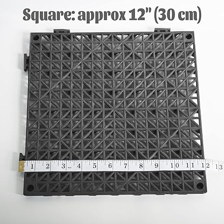 Pack of 12 Interlocking Rubber Floor Tiles, 12” x 12” Non-Slip Plastic Drainage Floor Mats for Garage, Kitchen, Patio and Pool