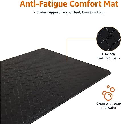 Rectangular Non-slip,Stain Anti Fatigue Standing Comfort Mat for Home and Office, 20 x 36 Inch, Black