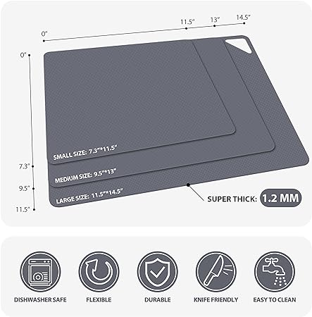 Plastic Cutting Boards for Kitchen, WK Flexible Cutting Board Mats, Thin Cutting Board Sheets, Dishwasher Safe, BPA Free, Multi Sizes
