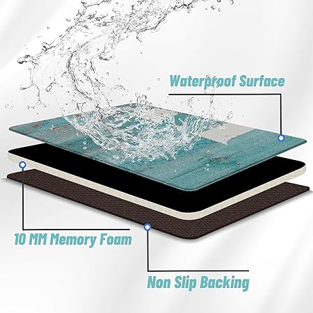 of 2 Anti Fatigue Non Slip Cushioned Kitchen Mats 0.4 Inch Thick Ocean, 17.3''x28''+17.3''x47'', Blue