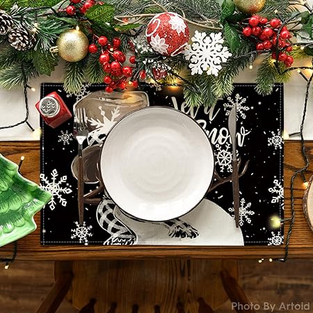 Snowman Snowflakes Let it Snow Winter Placemats Set of 4, 12x18 Inch