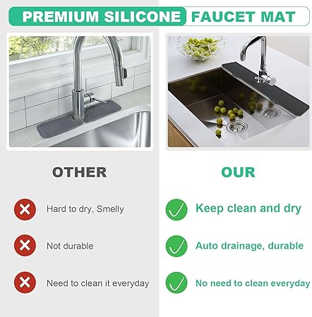 Silicone Sink Faucet Mat Splash Guard for Bathroom Sink Faucet, Water Drip Catcher, Kitchen Sink Splash Guard, Behind Sink Splash Guard Kitchen Mat, Faucet Drip Catcher, Sink Drain Pad
