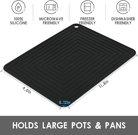 Silicone Trivets for Hot Pots and Pans-Trivets for Hot Dishes-Heat Resistant Mat for Countertops, Kitchen Small Dish Drying Mat, Silicone Pot Holders-Hot Pads for Kitchen Set 2 Black
