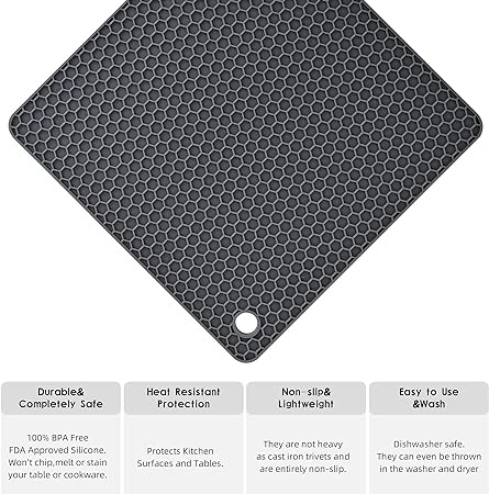 Silicone Trivets for Hot Dishes Heat Resistant Mats-- Non Slip Counter Protector Mat Pack 4 Black