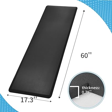 3/4 Inch Thick Anti Fatigue Kitchen Mat, (28"x17.3", Black)