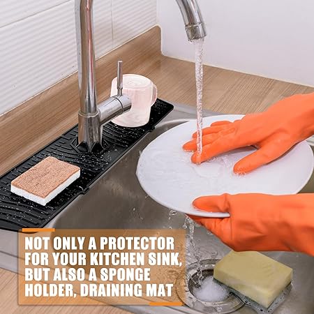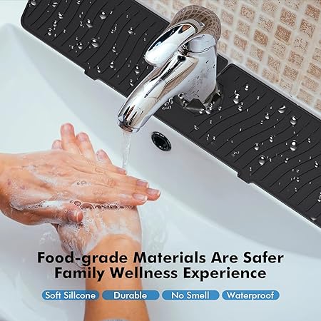 24in Faucet Mat Splash Catcher, Handle Drip Catcher Tray, Multipurpose for Kitchen Dish Drying Mats Sponge Holder and Bathroom Countertop Protect(Black)