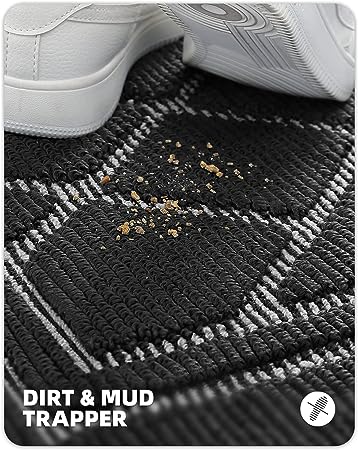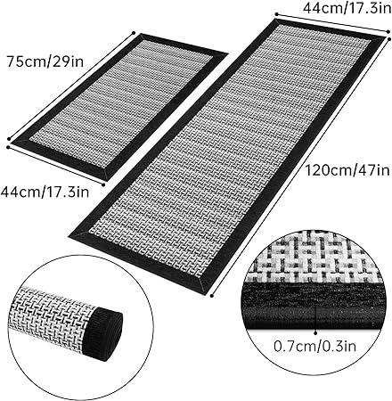 2PC Non-Skid Washable Farmhouse Standing Mat Absorbent Runner Rugs, 17.3"x 47"+17.3"x 29"(Black)