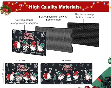 2PCS Christmas Cushioned Non Slip Floor Mat, (Black,L)