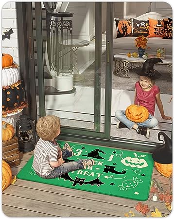 24”x32” Halloween Rugs Orange Pumpkin Door Mat for Front Door, Cute Halloween Decor Oval Decorative Doormat