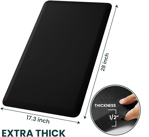 Anti Fatigue Cushioned Kitchen Floor Mats, Thick Ergonomic Standing Office , Waterproof Scratch Resistant Pebbled Topside, Supportive Comfort Padded Foam Rugs, 17x24, Black