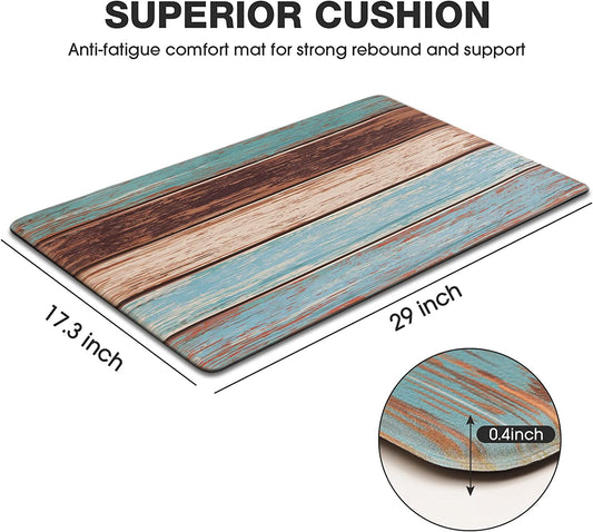 Anti Fatigue Cushioned Farmhouse Non Skid Waterproof Wood Texture Kitchen Mats