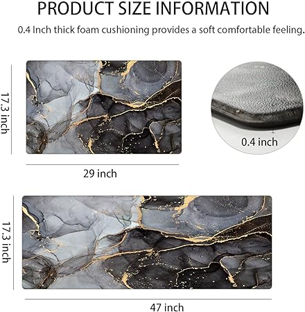 Anti Fatigue Cushioned Marble Gold Kitchen Accessories Non-Skid & Waterproof Standing Desk Mat for Floor Office, Sink, Laundry