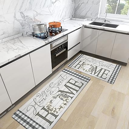 Anti Fatigue Farmhouse Cushioned Non Slip Waterproof Kitchen Floor Mat, 17.3'' x 28'' + 17.3'' x 48''