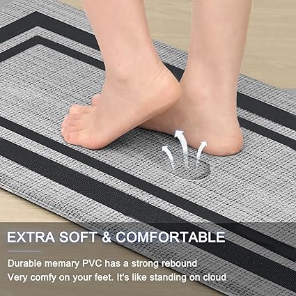 Anti Fatigue Cushioned Memory Foam Non Slip Kitchen Mats for Floor 2 Piece Set,