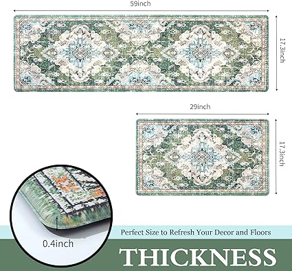 Anti Fatigue Kitchen Mats for Floor 2 Piece Set Green (17x29+17x59Inch)