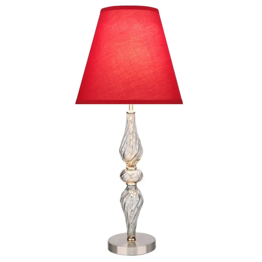 Aspen Creative 29" High Metal & Glass Table Lamp, Smoke Colored Glass with Hardback Empire Shaped Lamp Shade in Red, 13" Wide