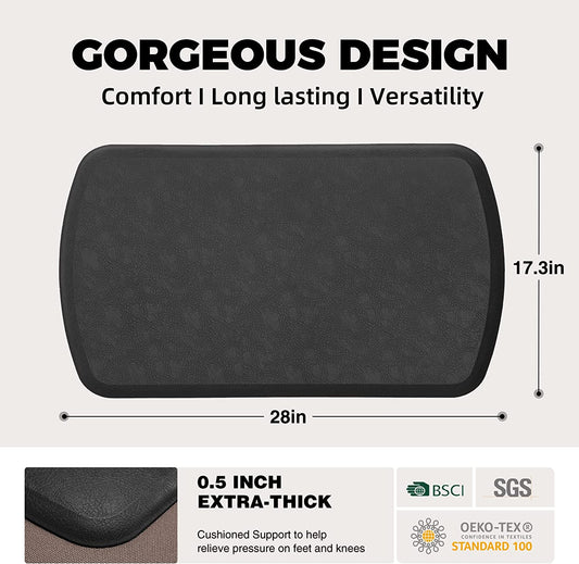 1/2 Inch Thick Cushioned Anti Fatigue Waterproof Kitchen Rug,17.3"x28"- Black