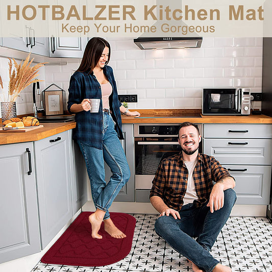 0.47 Inches Cushioned Anti-Fatigue Kitchen Rug, Kitchen Mats for Floor, Non-Slip Kitchen Rugs Sets of 2, Waterproof Kitchen Mat 17.3"×30"+17.3"×47",Black
