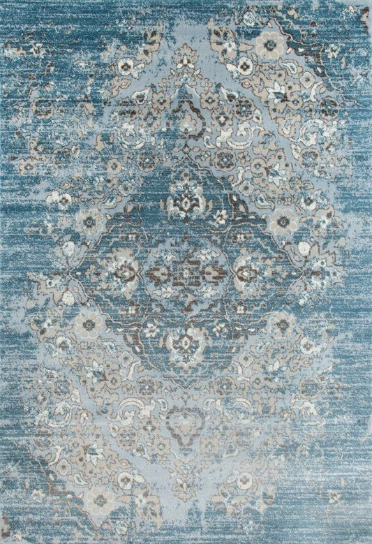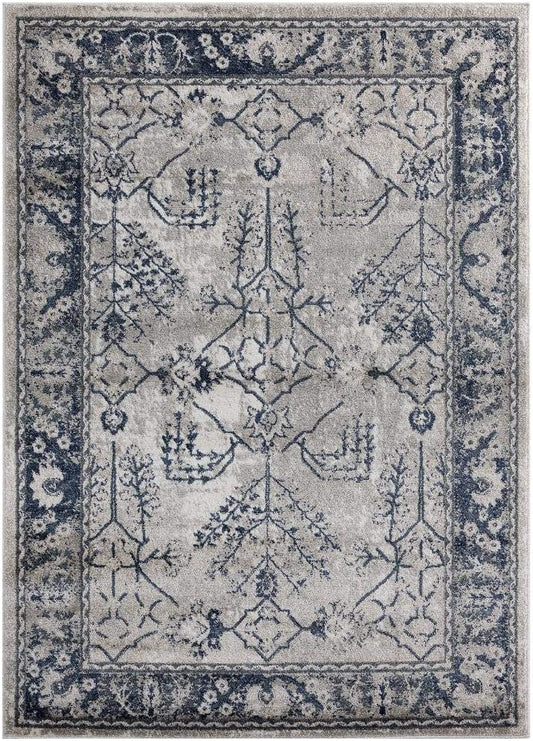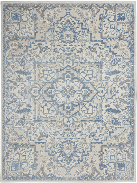 Persian Floral Traditional Ivory Blue Soft Area Rug