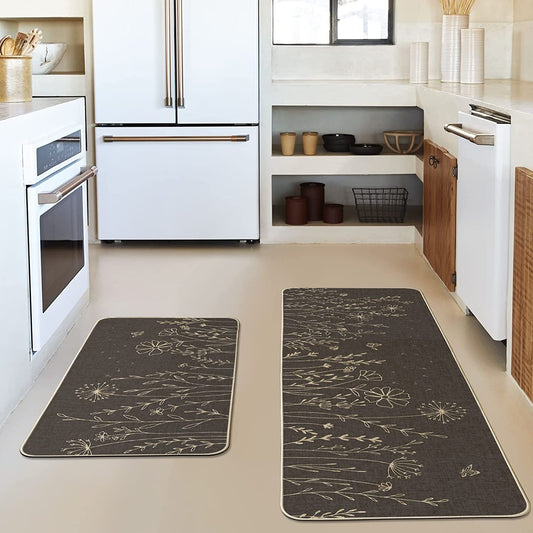Set of 2 Anti Fatigue Mushroom Non-Skid Washable Kitchen Runner Rug, 17.5"x29.5"+17.5"x47"