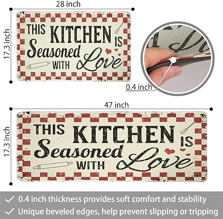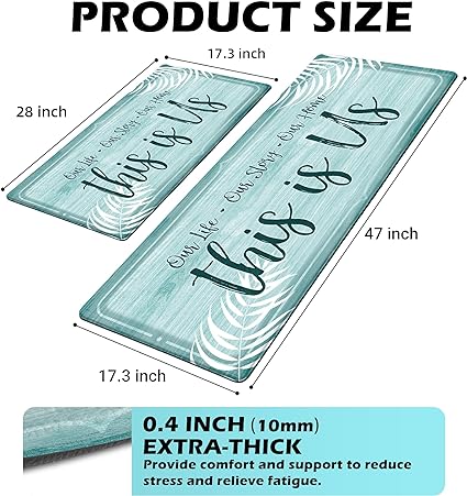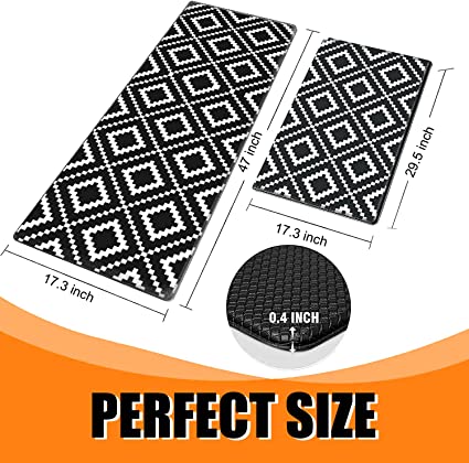 Set of 2 Anti Fatigue Kitchen Mats for Floor Foam Cushioned Non Slip Kitchen Rug Farmhouse Style Waterproof Comfort Padded Standing Mat for Sink, Laundry, 17.3 x 28 in +17.3 x 47 in