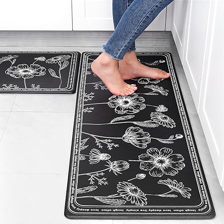 Set of 2 Anti Fatigue Non-Slip, Thick Cushioned, Waterproof, Heavy Duty PVC Foam Kitchen Rugs