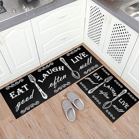 Set of 2 Non Slip Thick Kitchen Rugs and Mats, 17"x47"+17"x28"