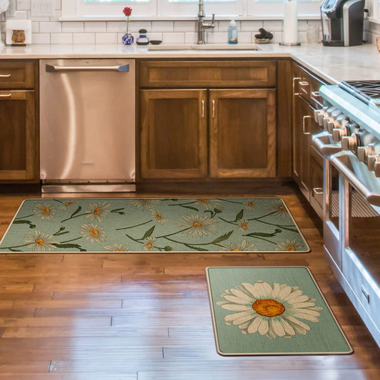 Set of 2, Floral Kitchen Rugs and Door Mats,17x29 and 17x47 Inch DM066