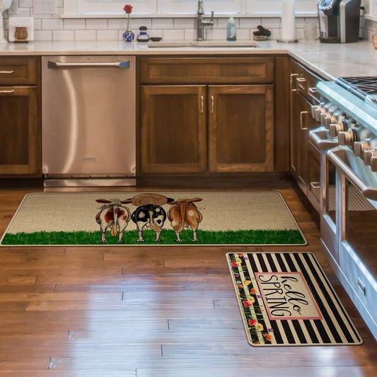 Set of 2, Spring Decorative Non-Slip Absorbent Rug and Door Mats, 17x29 and 17x47 Inch DM067